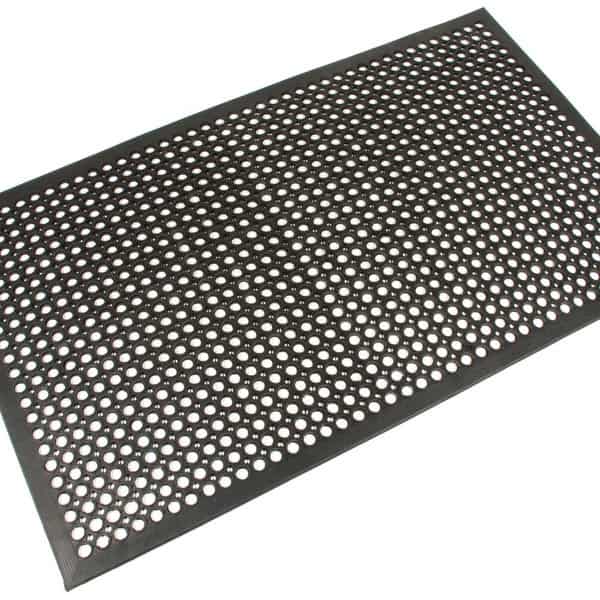 Ekonomiczna mata gumowa antypoślizgowa. Ocena właściwości:  antypoślizgowe ( 4/5) , antyzmęczeniowe ( 3/5) , odporność na zużycie ( 4/5),  do środowiska: suche lub mokre
